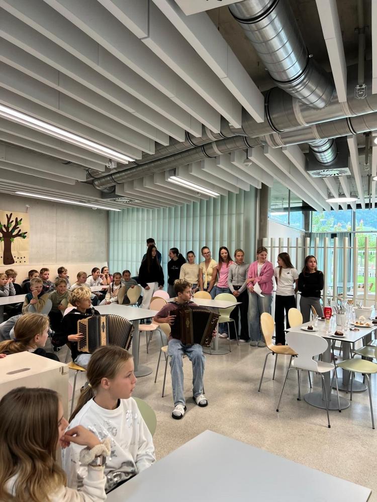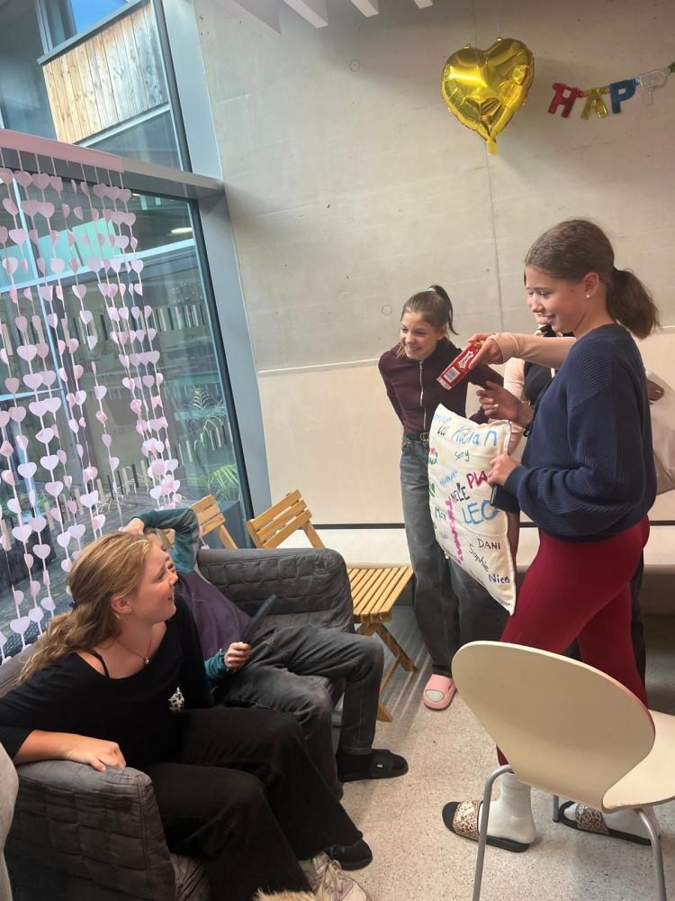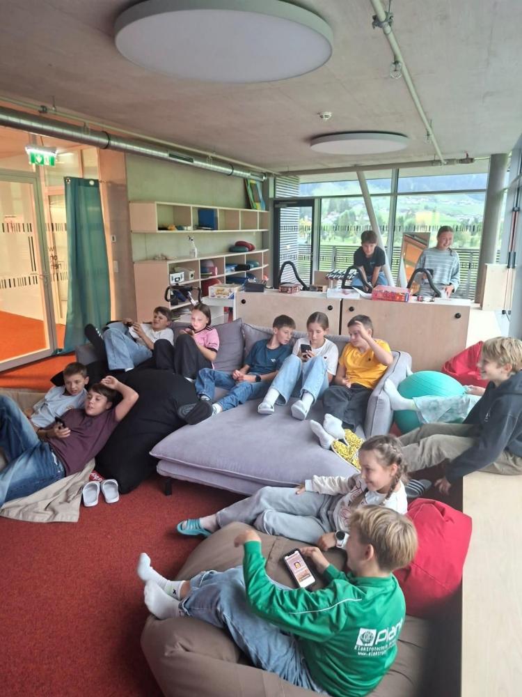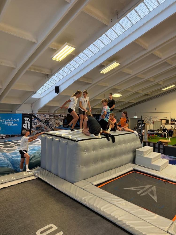 Letzte Woche war wieder bunt gefüllt! 🎉 Beim Kahoot-Quiz wurde gerätselt 🧠, ein letztes Mal Sommerrodeln bei seltenem Sonnenschein genossen ☀️🎢 und im Airparc ordentlich gesprungen🤸♂️. Dazu kamen Miteinanderstunden, Schwimmen 🏊♀️ und sogar Ziehharmonika-Klänge im Gang 🎶.