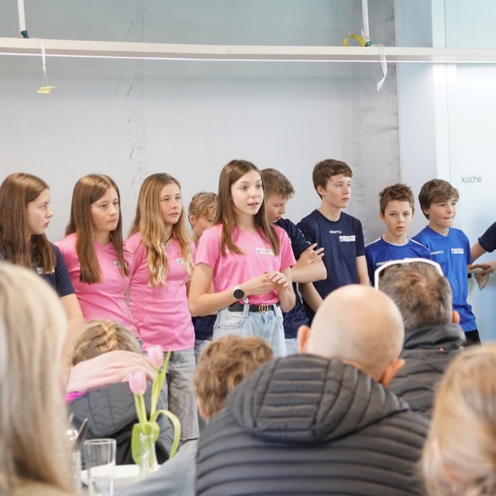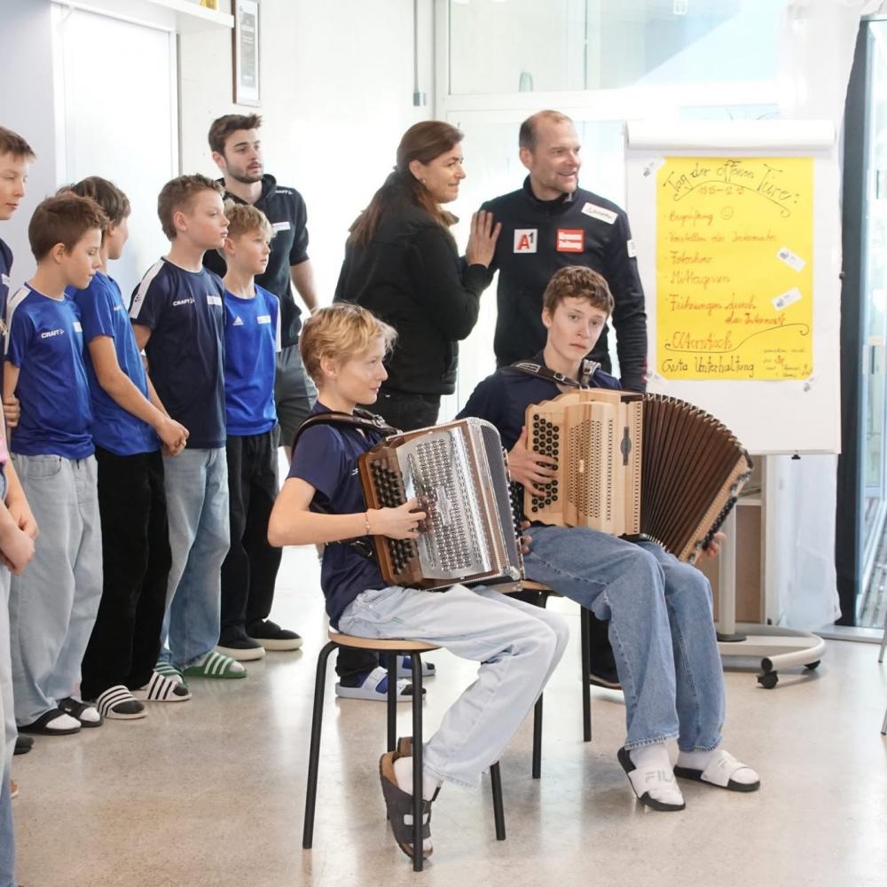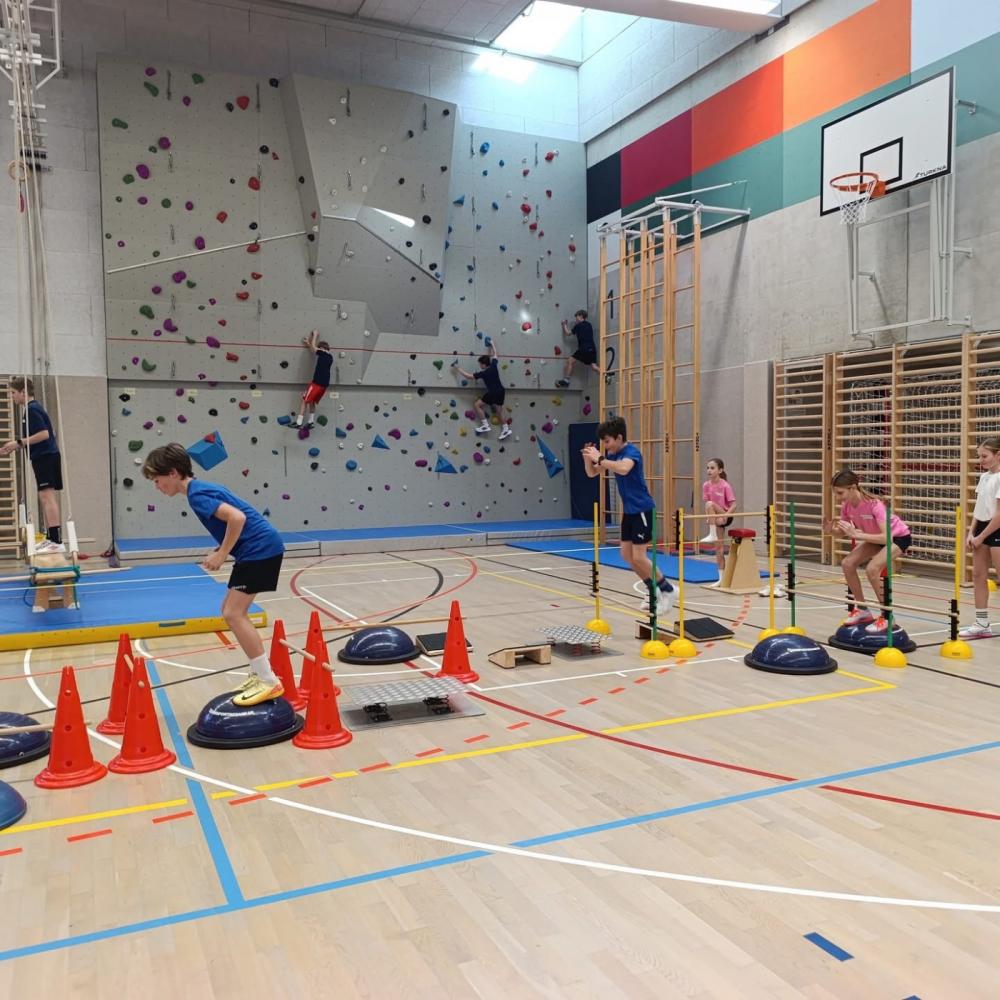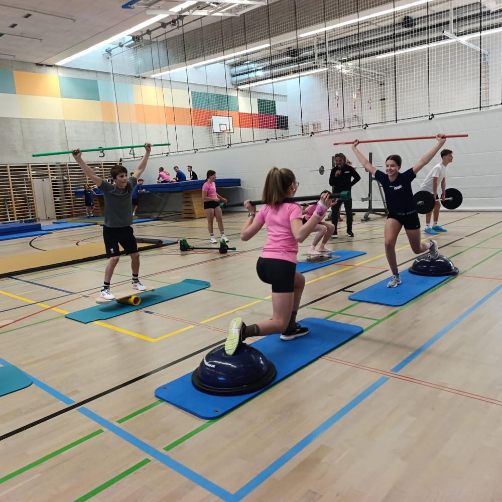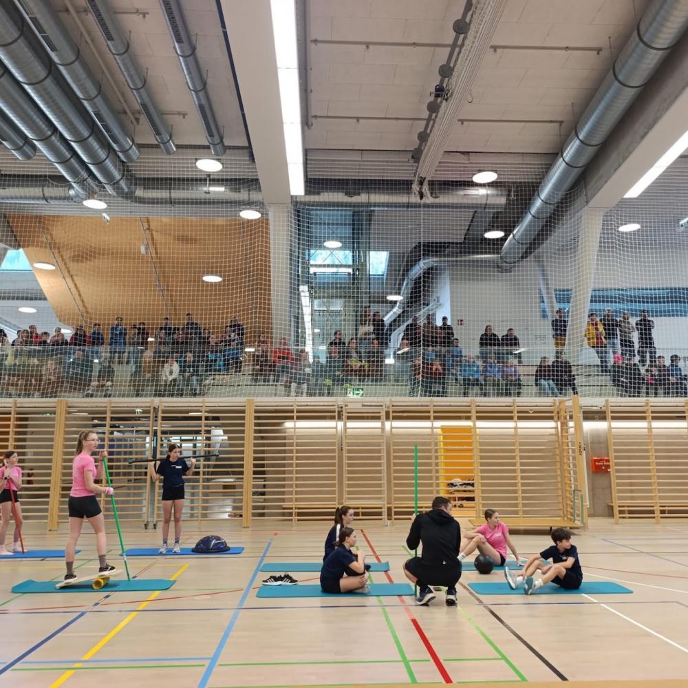 Ein weiterer Höhepunkt folgte in der Turnhalle: Die aktuellen Schülerinnen und Schüler begeisterten mit Trainingsvorführungen in den Bereichen Bodenturnen, Koordination, Kraft und Trampolin. Den Abschluss bildete ein informativer Vortrag rund um das Schulgeschehen, während die Kinder im Schulcluster an vier Stationen Wissenswertes über die Schule erfahren konnten.