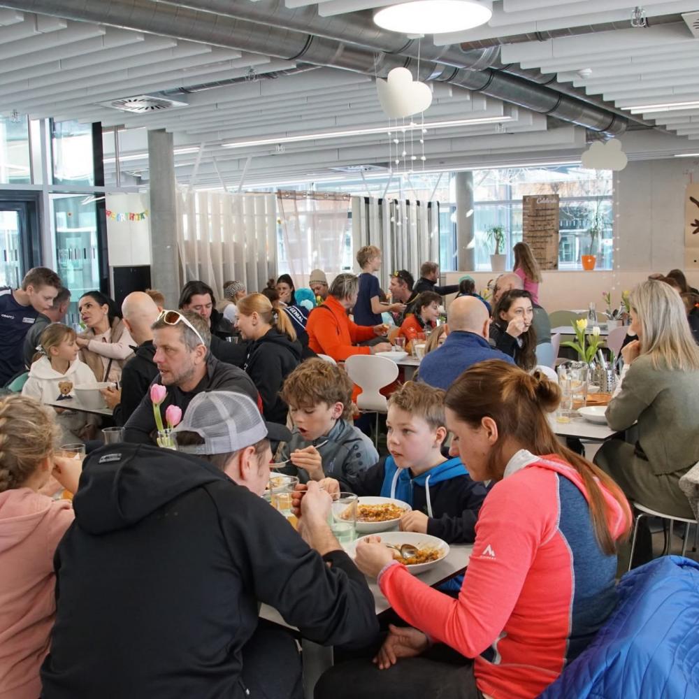 Im Mittelpunkt des Tages stand das Skitraining. Mit großer Begeisterung absolvierten die Kinder einen anspruchsvollen Mini-Cross, der vom Trainerteam mit Wellen, einem selektiven Slalomabschnitt, einem Sprung sowie einem Riesentorlaufteil unterhalb der Bergstation aufgebaut worden war. Beim anschließenden Freifahren mit den Gruppenführern der vierten Klassen und den Trainern konnten die jungen Talente ihre Skitechnik unter Beweis stellen und weiter verbessern. Um 10:30 Uhr versammelten sich Kinder und Eltern an der Talstation, wo eine eindrucksvolle Trainingsdemonstration der 1. und 4. Klassen stattfand. Diese bot den Gästen einen anschaulichen Einblick in die Entwicklung und Ausbildung unserer Schülerinnen und Schüler während ihrer Schulzeit.